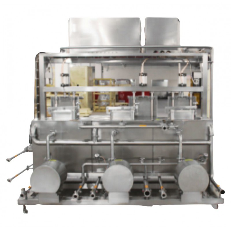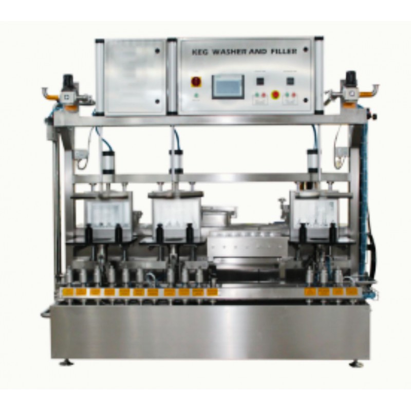 KEG verriegeln → Vorspülung mit Wasser → Druckluftentleerung → Laugenreinigung → Druckluftabblasen / Rückführung zur Lauge → Heißwasser 1 – Reinigung → Druckluftabblasen → Heißwasser 2 – Reinigung → Dampfspülung / Rückführung ins Spülwasser → Dampfsterilisation → Sterilisationsdruck halten → CO₂-Spülung / Entleerung → CO₂-Vordruckfüllung